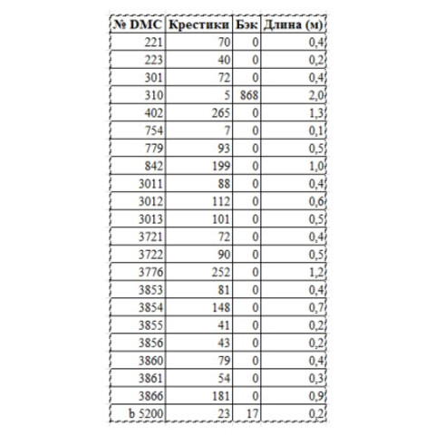 • Экономия времени: Вам не нужно тратить время на поиск и подбор нужных оттенков мулине.
