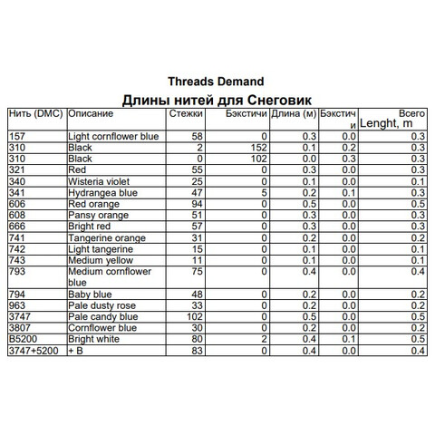 Набор ниток мулине к схеме "Снеговик" Внимание! схема в состав набора не входит, схема приобретается отдельно у автора схемы