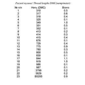 • Количество в соответствии с расходом: В наборе представлено необходимое количество нитей каждого цвета, рассчитанное на основе рекомендаций автора схемы.
