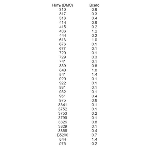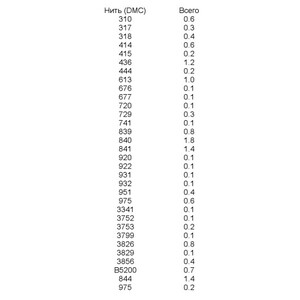 • Количество в соответствии с расходом: В наборе представлено необходимое количество нитей каждого цвета, рассчитанное на основе рекомендаций автора схемы.