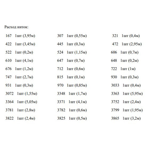 • Количество в соответствии с расходом: В наборе представлено необходимое количество нитей каждого цвета, рассчитанное на основе рекомендаций автора схемы.